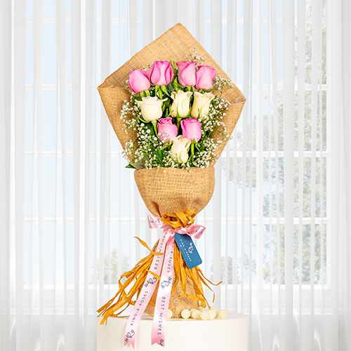 These beauties of 10 stems of roses wrapped in jute are sure to catch your attention at first site.